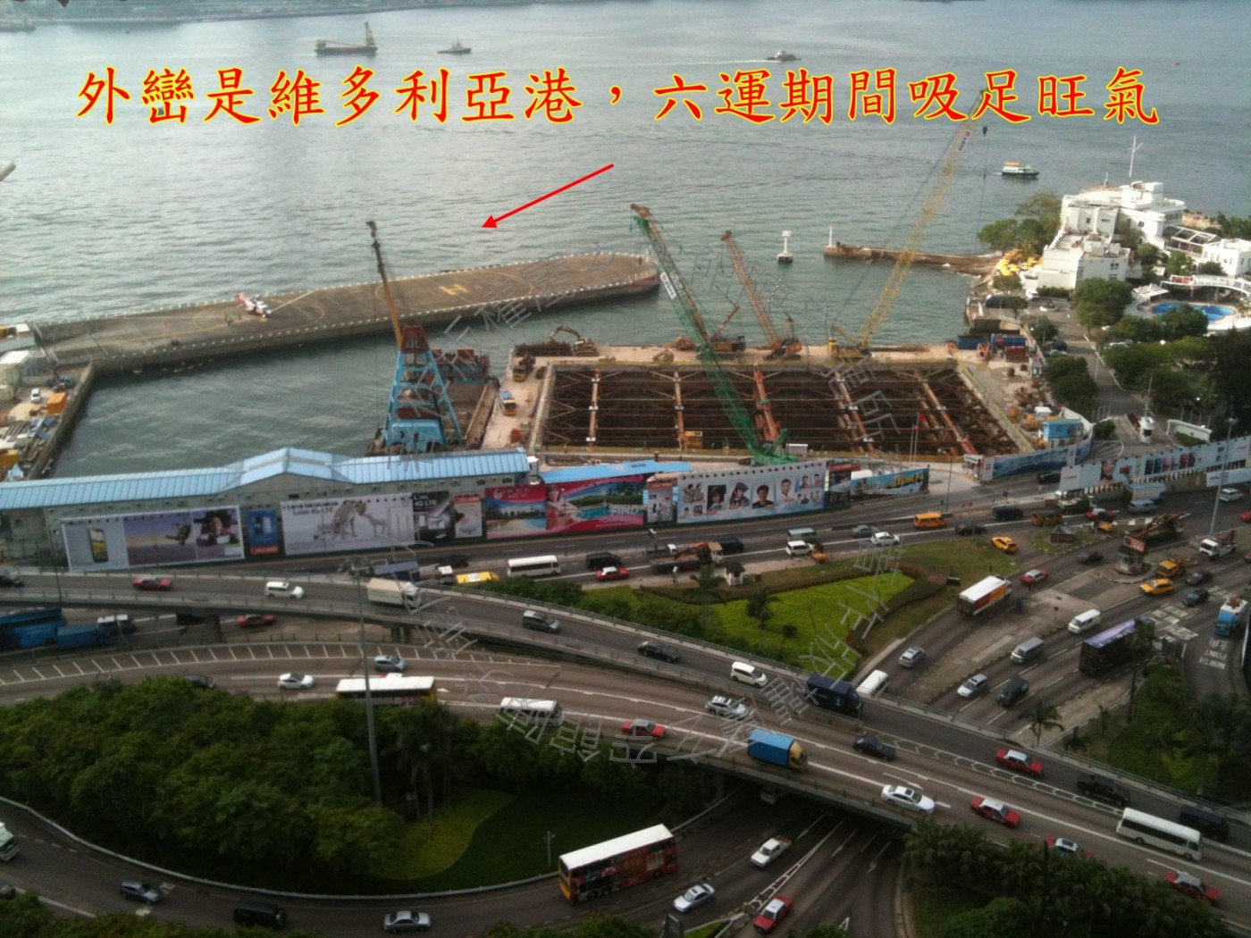 大厦为六运建造,巳山亥向兼丙壬,是四大局面中排行第二的双星到向。 虽山星下水,外岿不见山,但人丁仍兴盛健康。 此大厦坐向非常明显,背山面海,正门向海,电梯门亦向海。 前方是海隧出入口,汽车日夜川流不息,带动理气流动,外巒是维多利亚港,六运期间吸足旺气,丁财大盛。