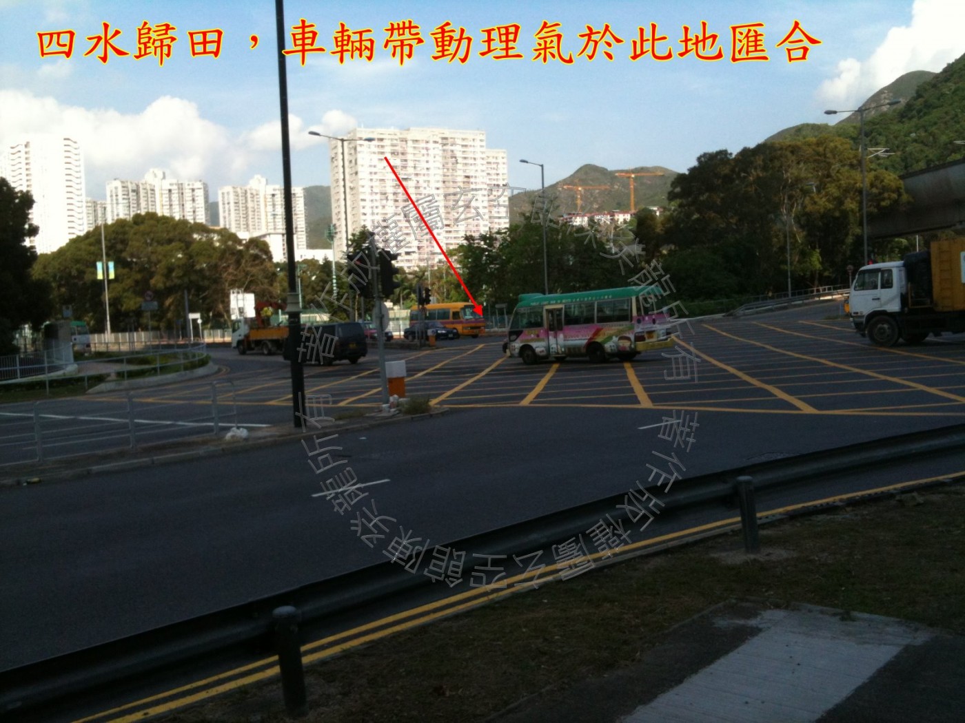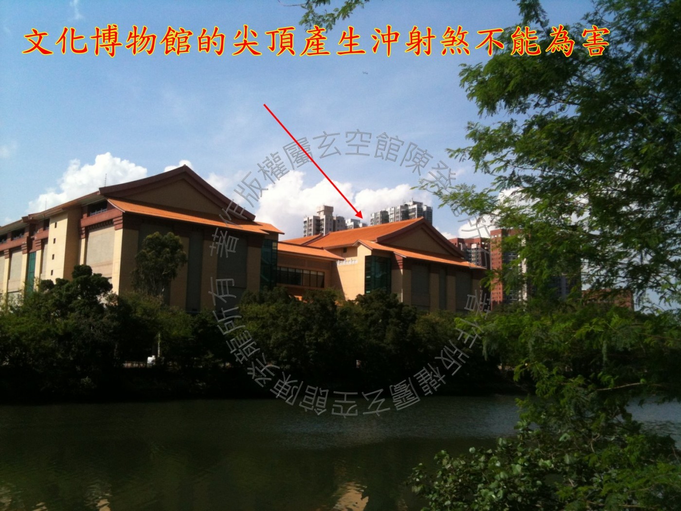 城门河对岸有两所校舍产生声煞,文化博物馆的尖顶亦产生冲射煞。 于玄空风水布局上,因有河道相隔怎远而使煞不能为害,若家中没有严重的健康问题,可置之不理。 狮子山隧道公路与大涌桥路相交处为四水归田,车辆带动理气于此地汇合,因而亦可以这方位为催财、聚财之用。