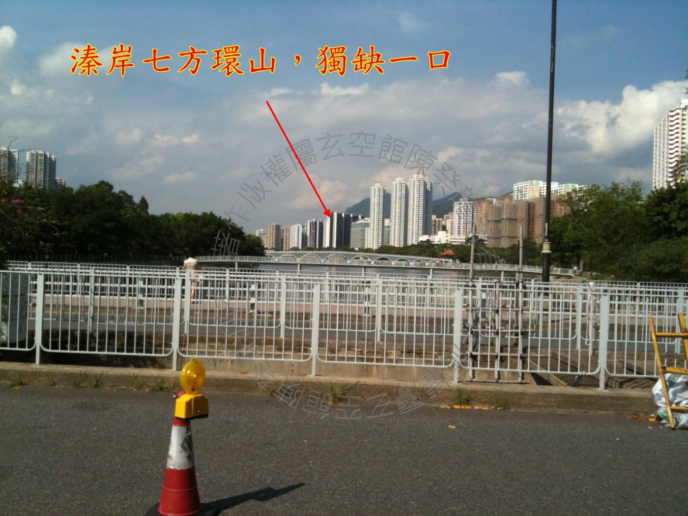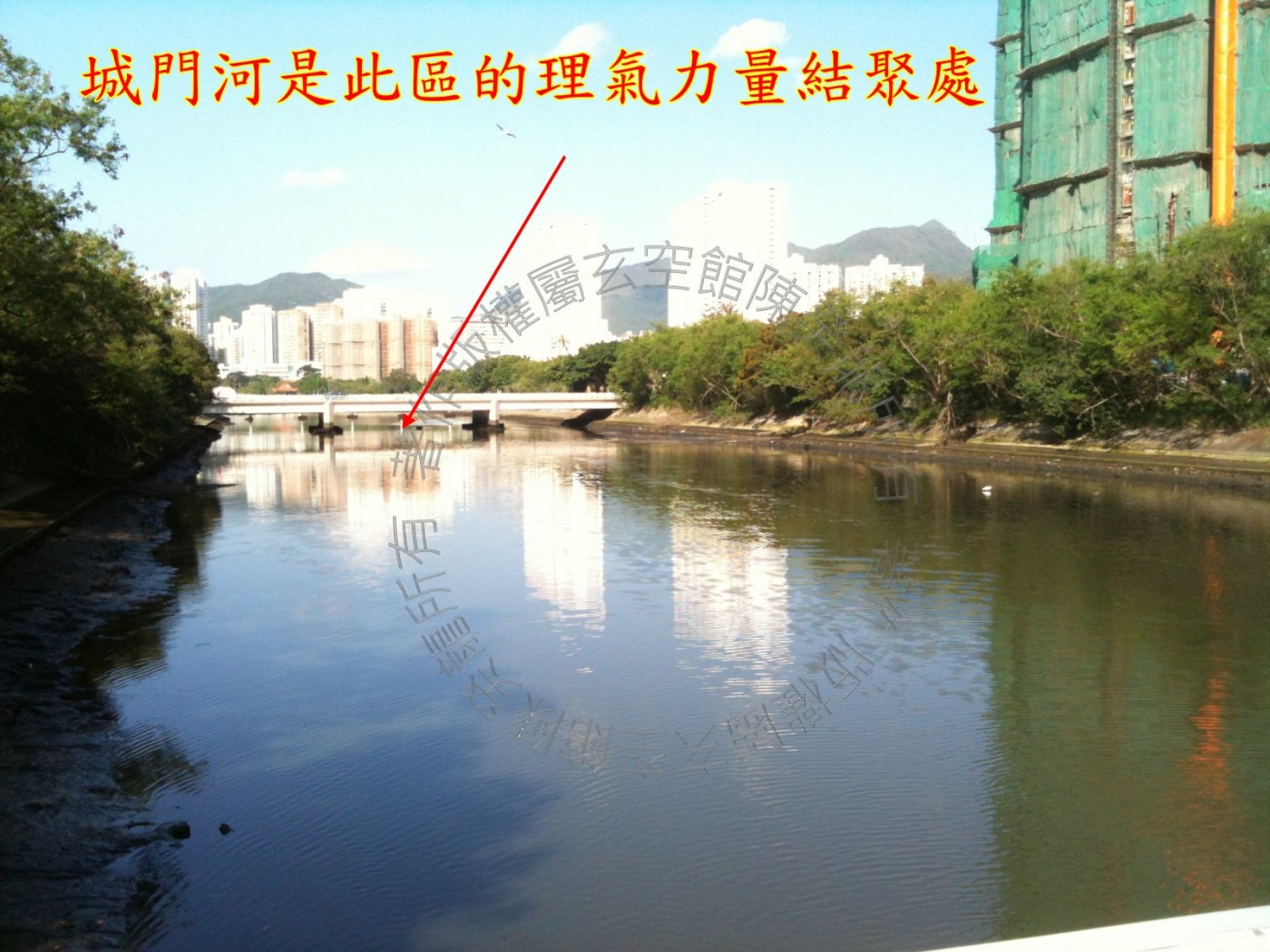 溱岸最大的特点是比邻城门河,河水由庚山屈曲而入,横跨四宫,艮寅山消去。 而城门河是此区的理气力量结聚处。 只是河水已受污染,淤泥积聚,水退发出臭味,未可言吉。 假若日后河道整治清理,旺星加临即能生财。 其次溱岸内园有水池,生气虽不及城门河,但池水必是洁净而且最接近大厦气口,若旺星到正门方或城门方亦能利财。