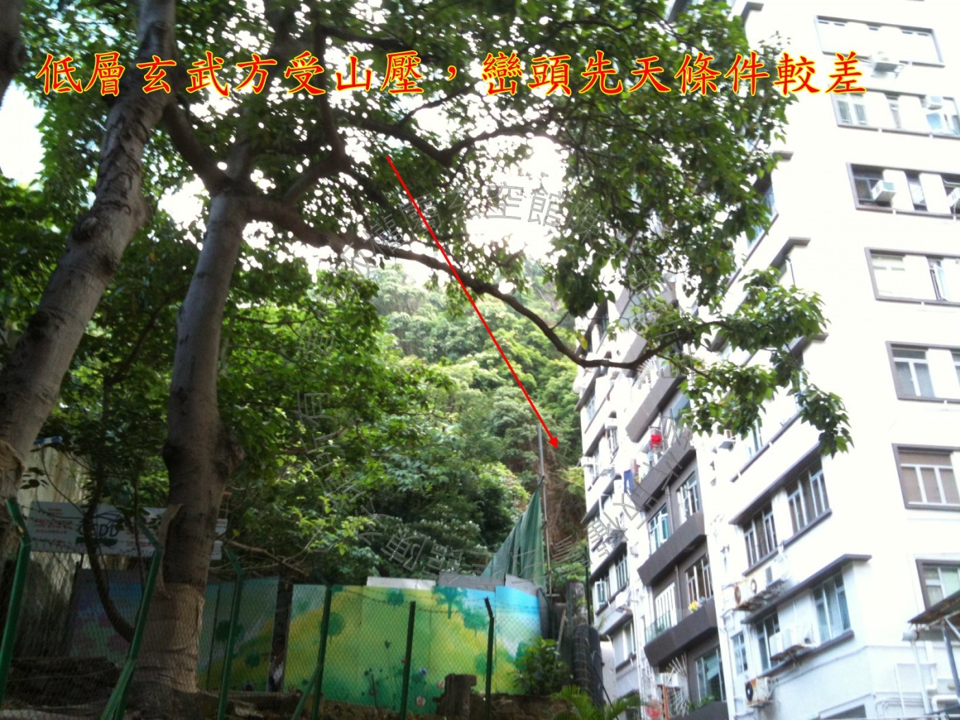 永富苑位于聂高信山北方落脉之山腰,但并不是背山面海,而是白虎方靠山,因此八、九运皆不合零正。 六运建造为旺山旺向,四大盘理排行第一。 可惜正门气路纳阳不足,低层玄武方受山压,岿头先天条件较差。 高层停车场有四个入口形成四种不同角度进入电梯大堂,此四个入口皆不是大厦纳气口。