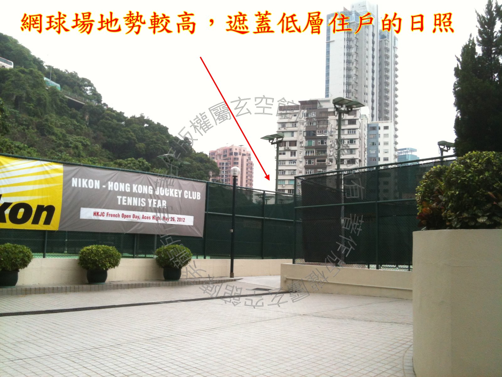 较远方马场位处低地而且绿草如茵,是生气结聚处,为整个堂局最旺财的方位,若向星八或向星九飞临,有利正财及偏财。 东南方有网球场但地势较高,遮盖低层住户的日照,理气流动较差。