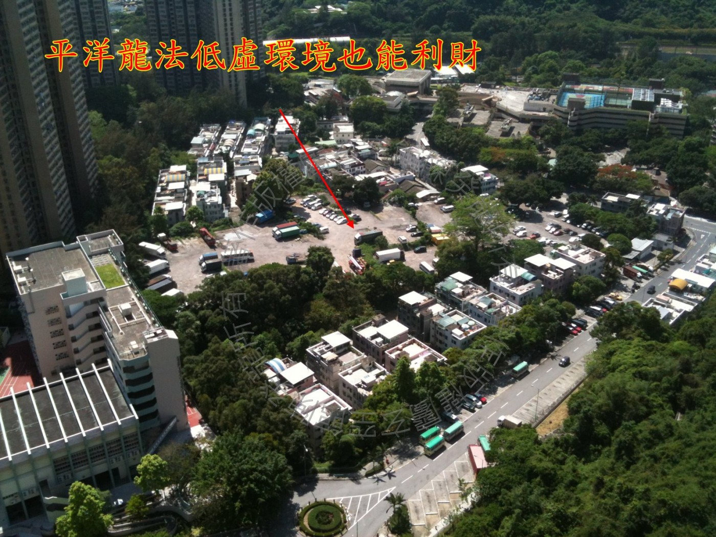 名家汇位处狮子山东北方落脉,是四面环山独一水口的格局,水口在艮山天元卦,合乎一卦纯清,可惜八运财星不在艮山,远方收不到水口,唯有观察近方巒头财星飞到之宫位,八运财星在乾宫西北方,西北方是显田村,虽不见真水,地理也是属于低虚环境。 平洋龙法低虚环境也能利财。