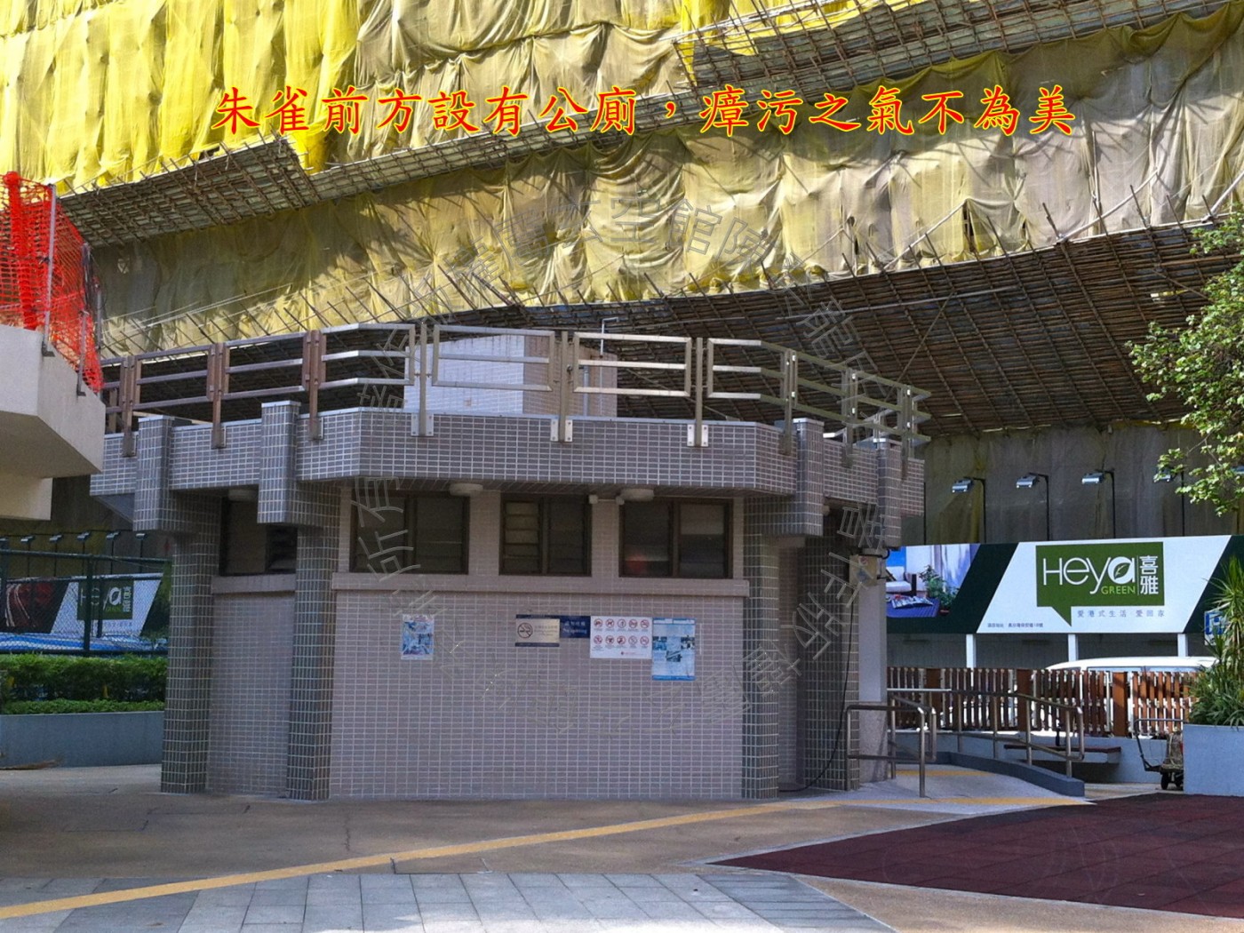 屋苑附近见多个游乐埸及球场,喜气洋溢,山坡翠绿,汉花园内园景优美。 但细看近方巒头,朱雀前方为球场虚地,本是生气蓄聚之佳所,奈何此方设有公厕,气味恶臭,瘴污之气不为美。