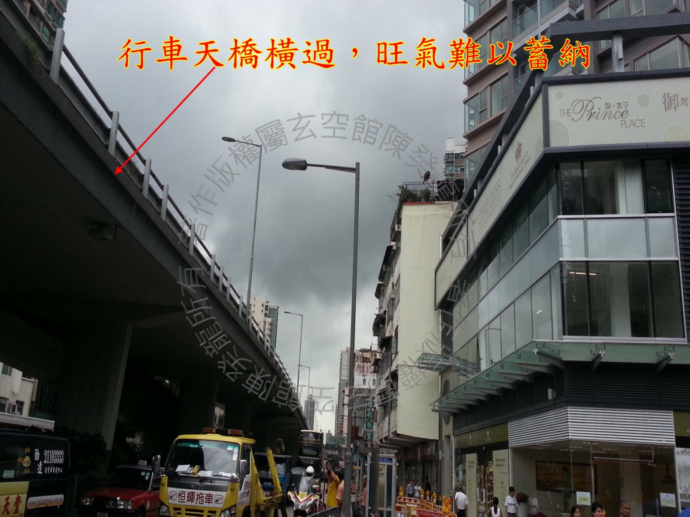 南面离方五十呎内见行车天桥横过,直水无情,旺气难以蓄纳,桥压亦使气路阻塞,财运及健康运均受影响。