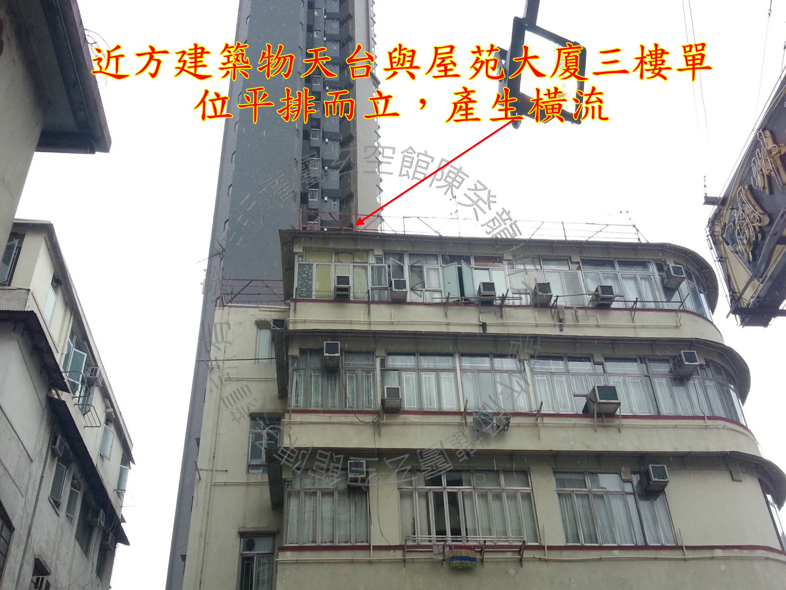 西面近方建筑物的天台杂物乱放,天台与屋苑大厦三楼单位相距较近,所产生之横流对该层单位影响最大,而刚巧不幸病星到宫,因此该宅主要多加注意。