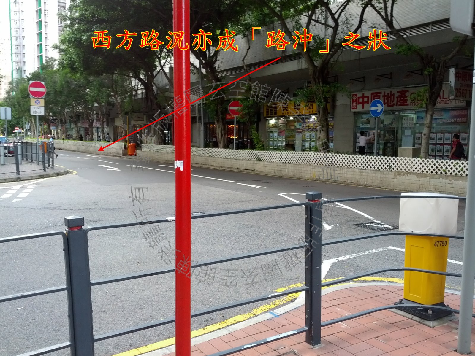 北方马路路况成反弓之势; 另外,西方路况亦成路冲之状,破坏了该宫位之星辰,不过车况不多,破害不算严重。