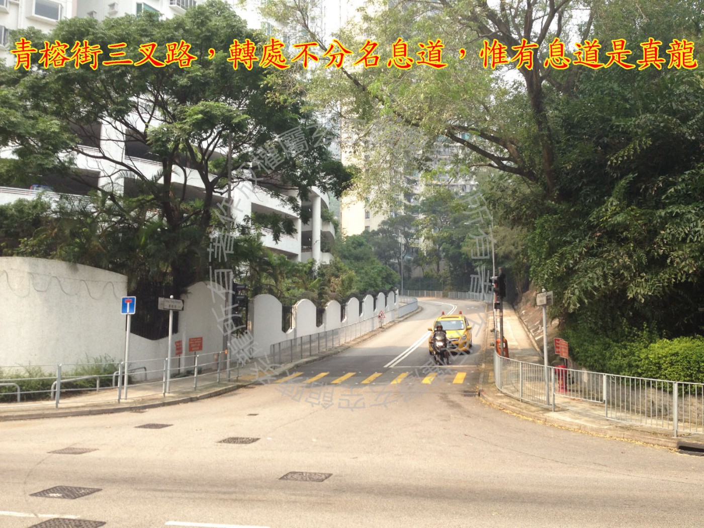 海盈花园之北面坎方有一加油站所形成之气煞,此气煞能破坏宫位之理气于无形,固不为美。 且更见大榄郊野公园山石嶙峋,有小儿难教之叹。 九运时期,情况更严重。 易患皮肤病。 青榕街小路入大路成三叉路口,所谓「转处不分名息道,惟有息道是真龙」,故以此为吉征。