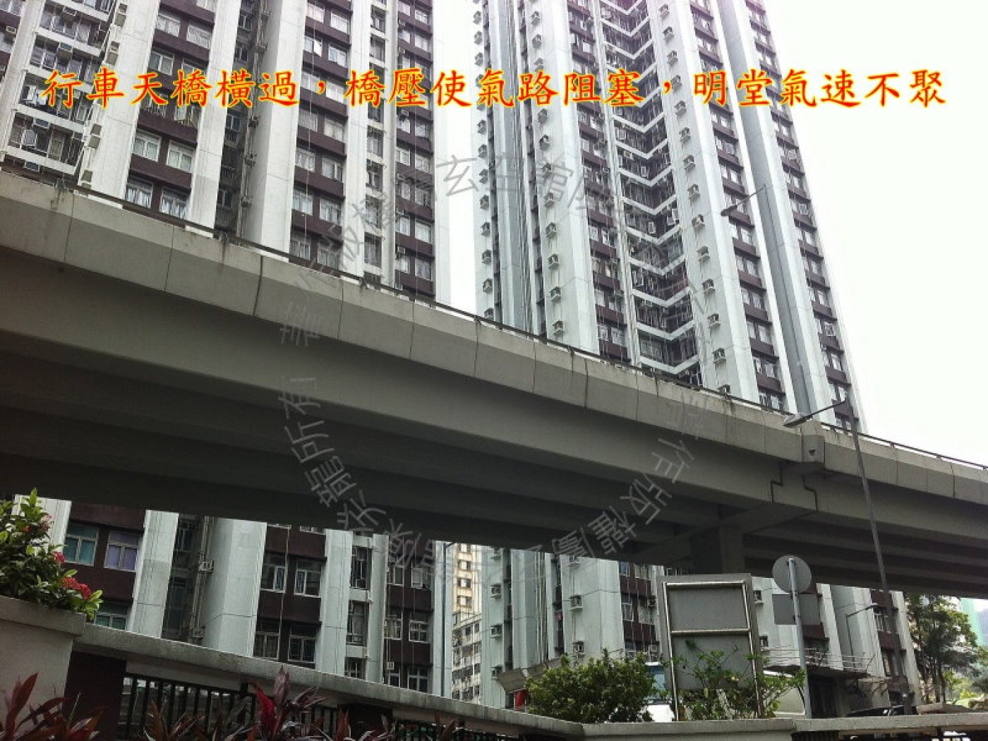 北面坎方、东南巽及东北艮方东区走廊高速车辆带动的气流过急,不为美。 东面震方东区走廊行车天桥桥板高压,不可言吉。