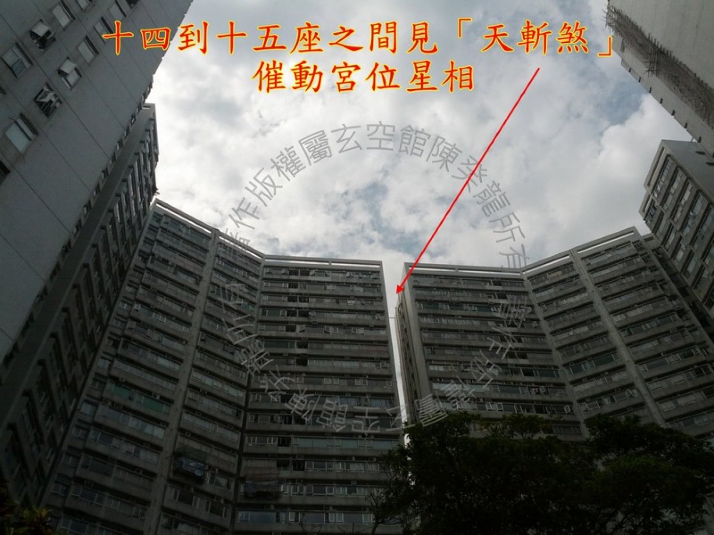 内园方面,屋苑十四到十五座之间的峡缝,加上维多利亚港迎面而来的海风,做成一条力量强劲的「天斩煞」; 十四座震宫星相良好,因此「天斩」反而为十四座住户带来喜庆之事,而十五座兑宫星相不应受动,因此十五座住户反而要多加注意健康问题。