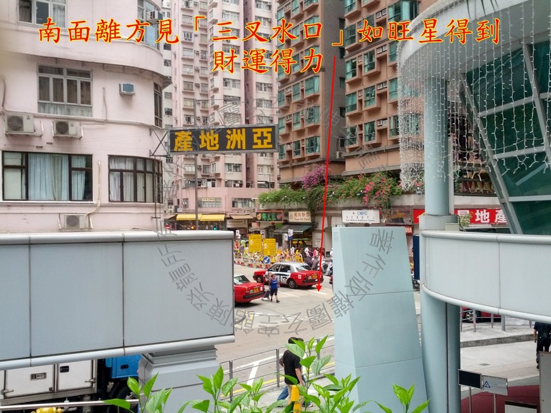 路况至南面离方,见和富道路及北角道交界,视为风水学上的「三叉水口」,车来车往带动旺气自生,如旺星或城门到临,主财运得力。
