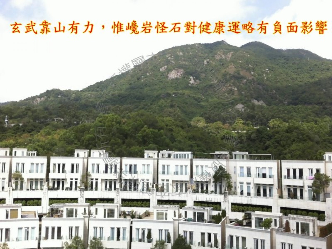 九龙塘毕架山峰之北面坎方见笔架山,玄武靠山有力丰盛,能庇荫子孙运及健康运。 东北面艮方之狮子山及东北面干方之尖山,如挨得八运丁星能庇荫健康运,但山上的巉岩怪石对健康运略有负面影响。