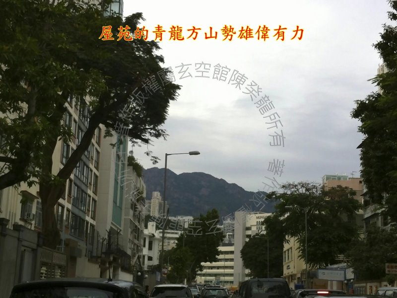 九龙塘龙苑北面坎方见狮子山,青龙方山势雄伟有力。 西面兑方及东北面乾方之九龙仔公园地势较高。 南面离方须留意地盘所产生的「动土煞」,假若有动土工程,掘地动土会使理气紊乱,影响健康运。