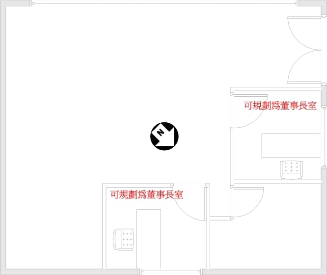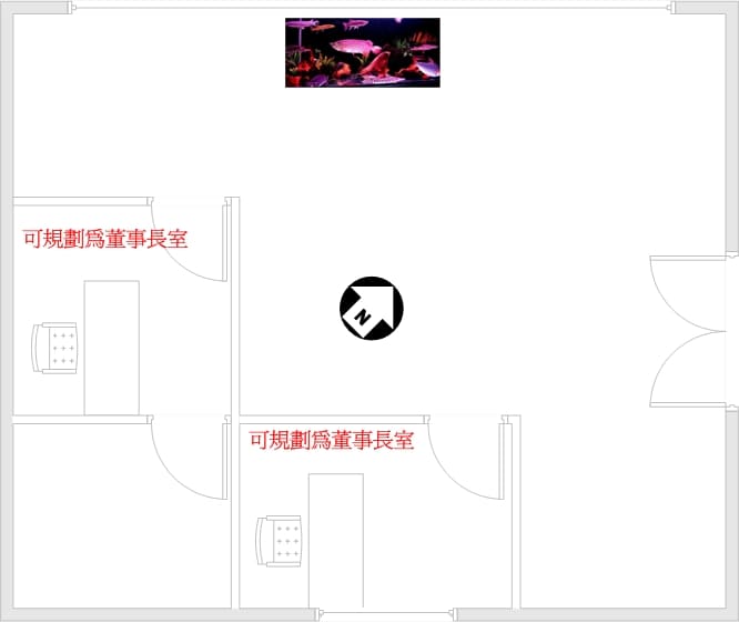 所以我们可以将董事长室规划于这两方位其中之一上。
