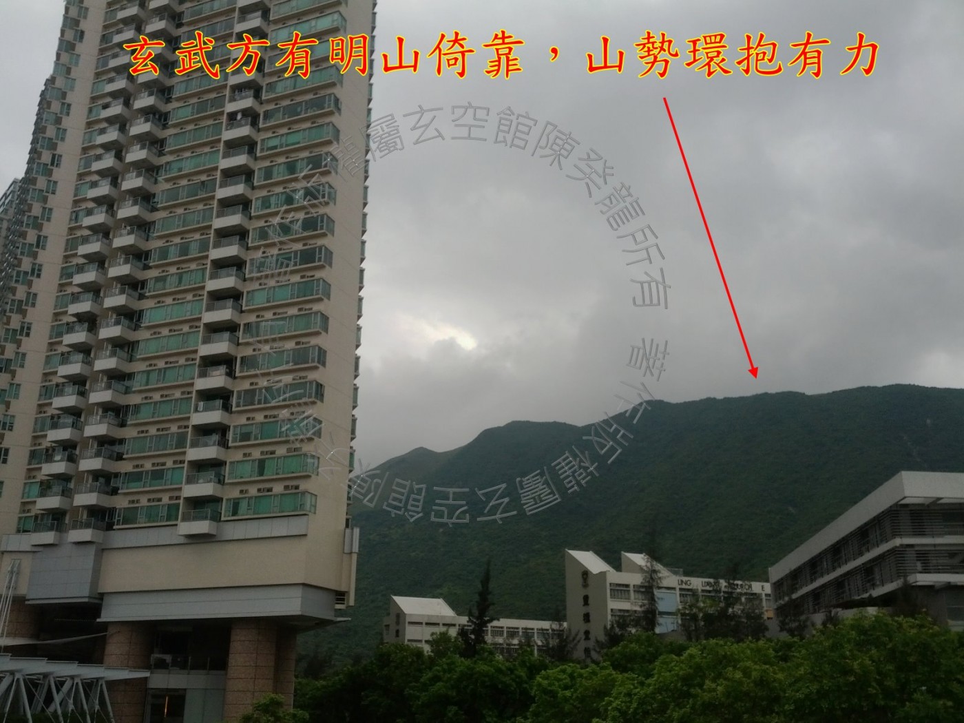 屋苑后方山巒,可能因挖掘或暴雨冲蚀,以致远望时林木之间有部份地方见泥土,此为「山巒破面」。 对一至五座户主要注要不正桃花之应,而读书运亦略有受损; 第六座户主要提防小人是非争吵、官非等凶应。