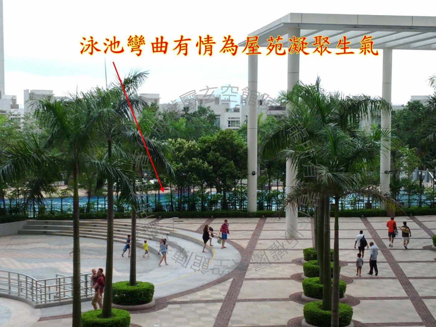 而会所内的泳池弯曲有情,亦能为屋苑凝聚生气。 泳池相对地对第六座住户产生最有利的影响,因刚巧当令财富到宫,因此此座住户在财运上会有吉应; 第三、第五座住户,因泳池催动了原局退气星,住户要提防是非口舌之应; 而第一、二座户主更要小心因病星被催动后带来的疾病之害。
