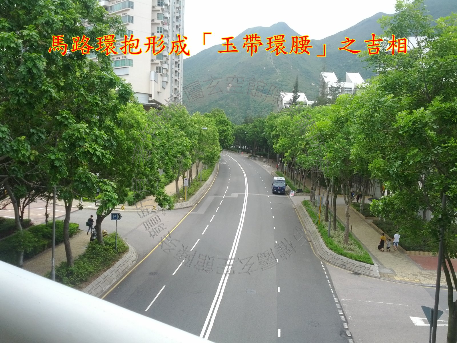 屋苑近方玄武区见马路环抱,路旁树影婆娑,生气随之而生,形成「玉带环腰」之吉相,对一至五座住户的财运、事业运、读书运都有所裨益; 因星相不同,此吉相反而不能对第六座住户带来好处。
