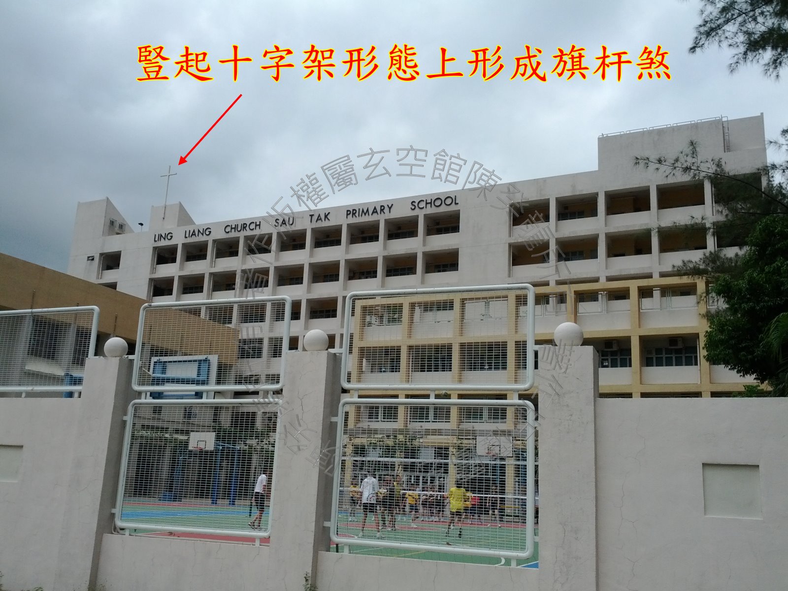 第五座南面离方小学见竖起的十字架,形态上形成了风水学说上的旗杆煞,对第五座低层住户财运略有影响。