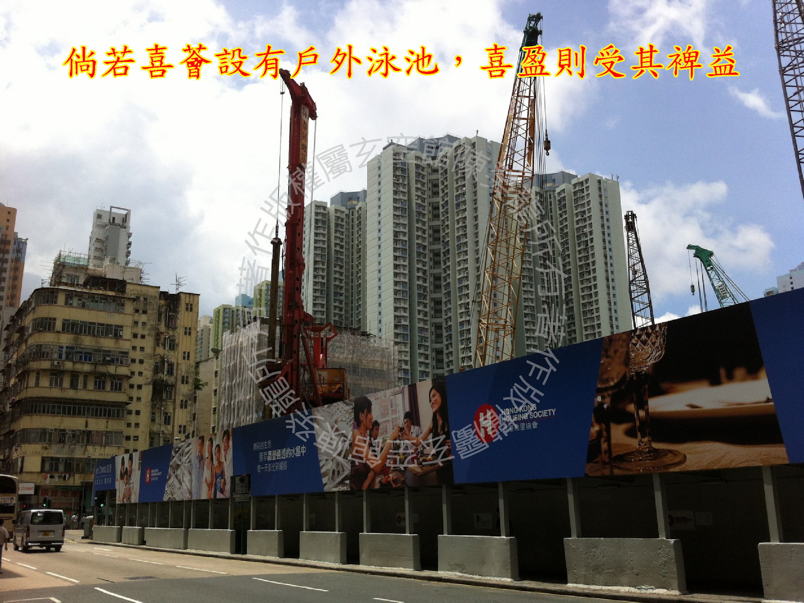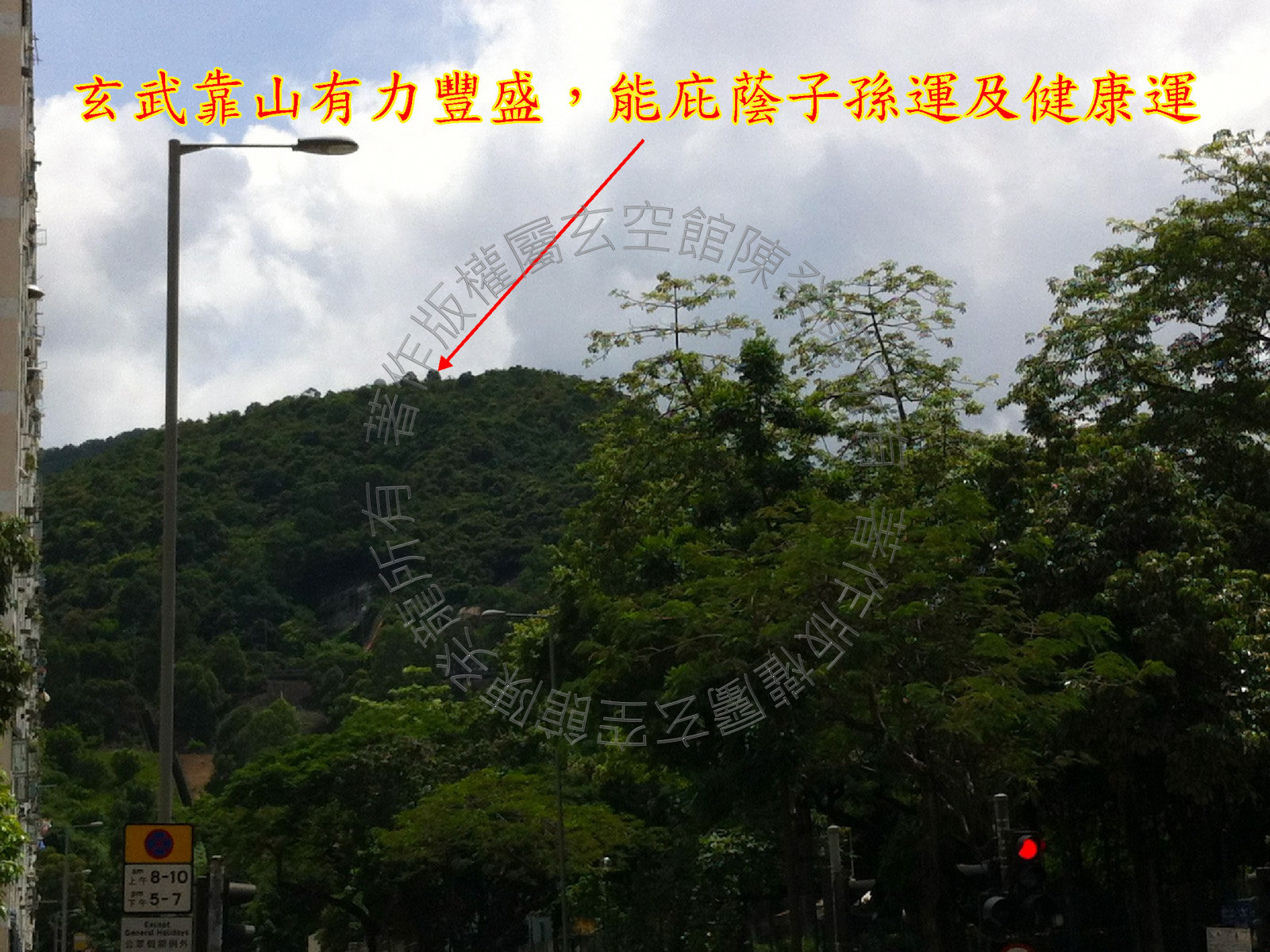 喜盈北面坎方及东北面艮方为尖山落脉处,除尖山外更有大厦紧贴,后方得靠,玄武有力,能庇荫子孙运及健康运。 东北面艮方之丽宝花园的缝隙成天斩煞,落山风经缝隙成急速气流,可催动财气,惟风力不太强劲。