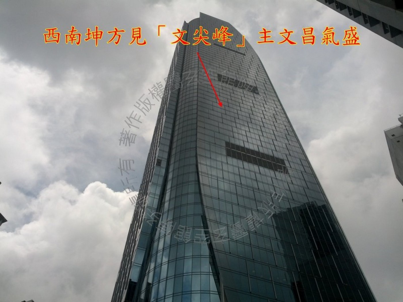 西南坤方见高耸的港岛东中心,视为风水学上文尖峰,主催旺家宅内的文昌之气。