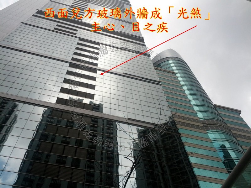 西面兑方玻璃外墙大厦,光线因外墙反射入屋,形成「光煞」,易主心、目之疾。