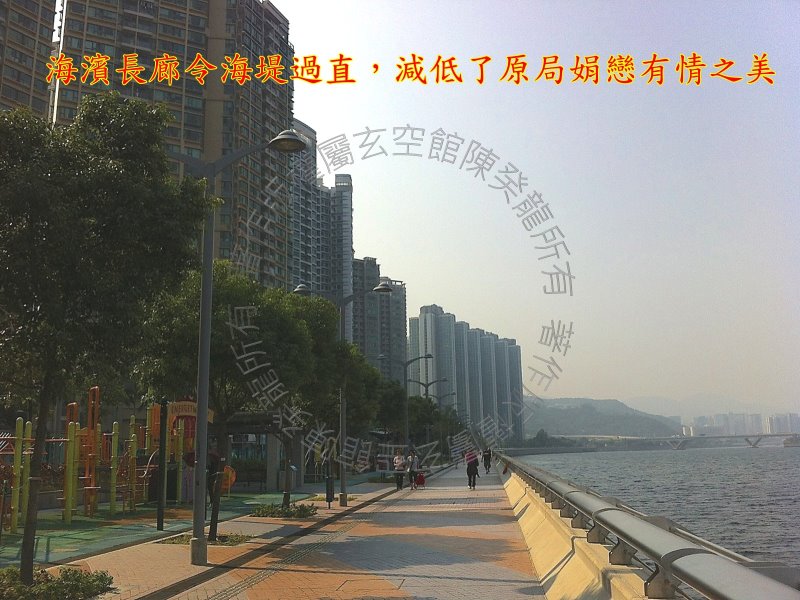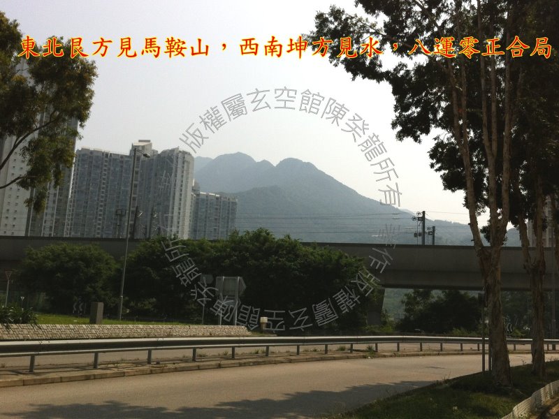 北面坎方是吐露海,海港后又见八仙岭,山水有情。 此方之回旋路使生气贮留,见吉则现。 东北艮方是西沙路转入恒辉街之玉带环腰,公路屈曲弯抱有情,成生气囤积之处,此方有一巨型回旋处生气贮留。 东面震方及东南巽方见铁路成「陆桥煞」,玄武区见高架桥及其隔音上盖,不美。 还幸东面震方见马鞍山,东南巽方又见鹿巢山,山势雄伟有力, 如盘中山星加临,可裨益健康运。