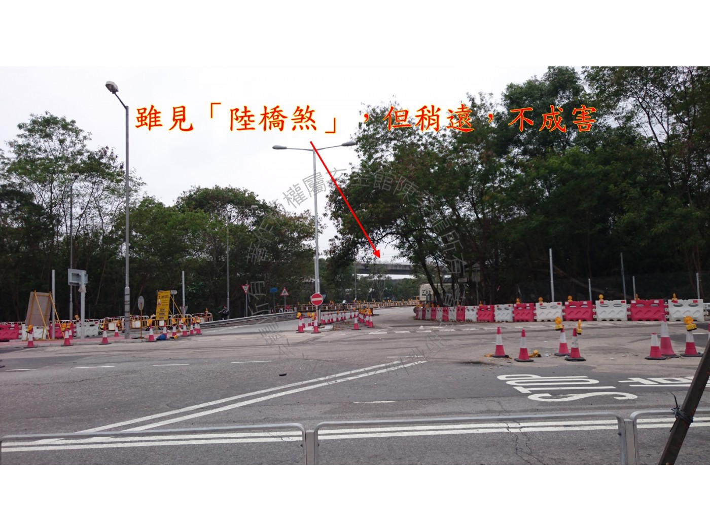 另一方面,此方可见青朗公路成「陆桥煞」,若此公路位于近方,且向外弯曲,状似一把锋利的镰刀,狠狠地横劈屋苑,宅内人便容易发生血光之灾,亦不容易聚气; 幸此公路距离屋苑稍远,状亦非呈弯形,可减低其煞。 同时,此方有一座架空电缆相距1B期不足100米,距离太近,此煞最为无形,对人体脑电波做成干扰,会令人心烦不安,神经过敏。