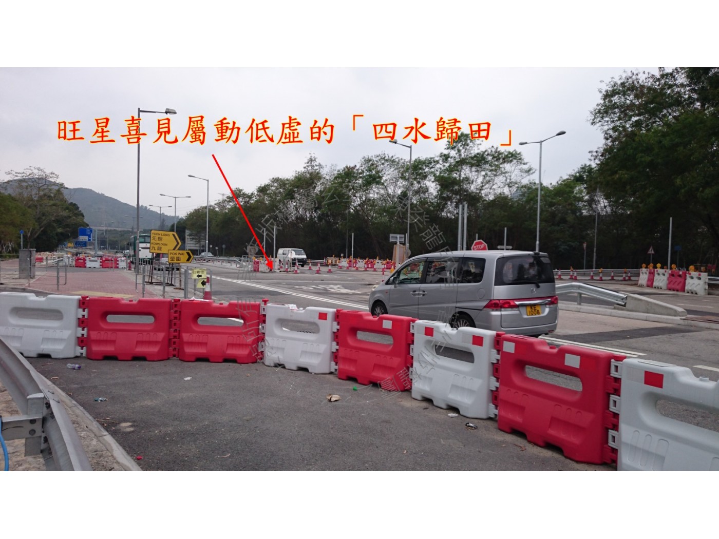 乾宫西北方,远为南生围等低洼之地,近为新潭路及沙埔村路交界的「三义水口」,此亦为吉矣。