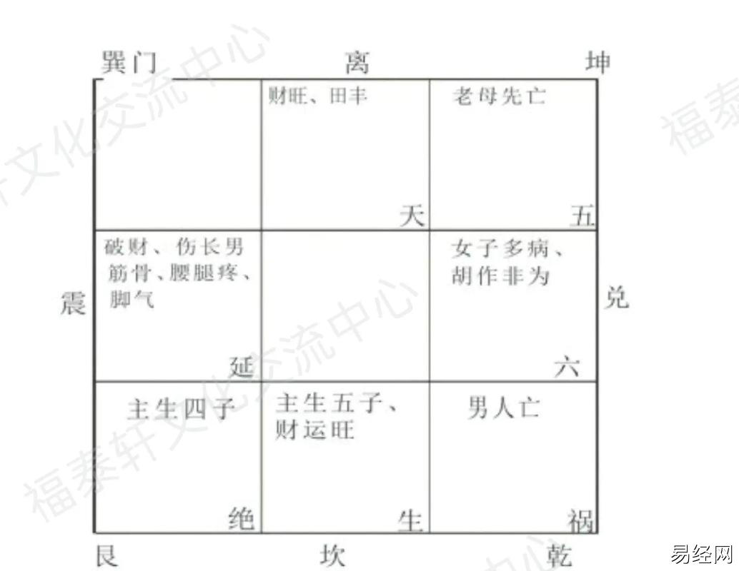 绝命位: 坐北朝南房屋的西北方位。此方位主凶险、疾病。