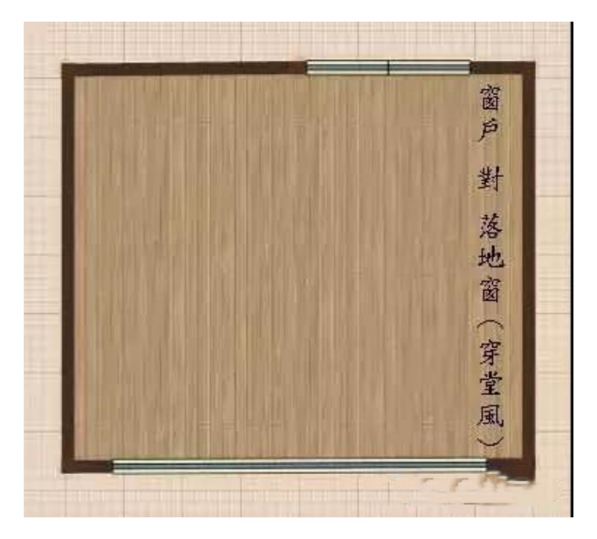 部份住家或国宅常见餐厅旁也加开一扇窗,如果全开放式的客餐厅,就构成了窗户(落地窗)对窗户的穿堂煞。