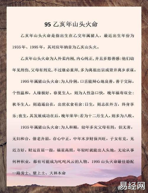 2025最新山头火属猪女性格 属猪山头火命详解是什么意思?,最新生肖运势由易经网整理发布!,2025最新山头火属猪女性格 属猪山头火命详解是什么意思?山头火命是五行命理中的一种,代表性格热情、积极向上。属猪女性格善良、乐观,与山头火命结合,更显坚韧与智慧。2025年运势受五行影响,需注意人际关系与事业发展。山头火命者宜佩戴红色饰品,提升运势。整体来看,2025年属猪山头火女性将迎来机遇与挑战并存的一年,需把握时机,稳步前行。