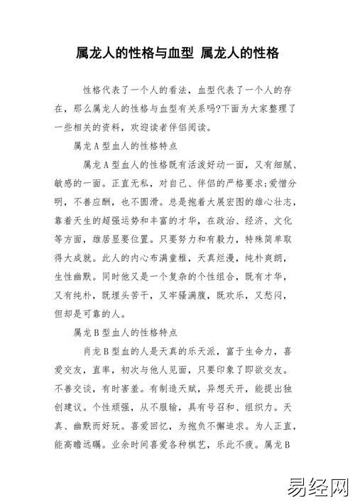 易经网推荐2025最新59岁属龙男人性格 80后属龙男生性格是什么意思?,最新生肖运势,下面是详细内容: 性格概览 59岁属龙男性拥有坚毅不屈的性格,有着非凡的领导力和敏锐的洞察力。他们自信而足智多...