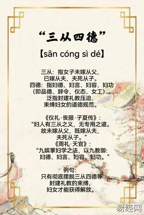易经网推荐2025最新三从四德生肖是什么 妇女三从四德是指什么是什么意思?,最新生肖运势,下面是详细内容: 三从四德是中国传统文化中的重要道德规范,其核心思想源自于儒家文化,强调女性在家庭和社...