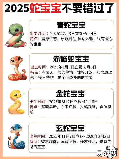 易经网推荐2025最新属蛇宝宝2025年运势 2025蛇宝宝下半年出生好的日期是什么意思?,最新生肖运势,下面是详细内容: 2025年为乙巳蛇年,对于属蛇的宝宝来说,这一年受到吉星庇佑,运势顺遂。 健康运势:...