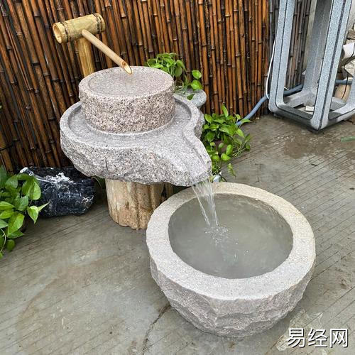 流水石磨: 将石磨与流水结合,寓意着财源滚滚,生生不息。流水石磨不仅具有观赏价值,还能起到加湿空气、净化环境的作用。