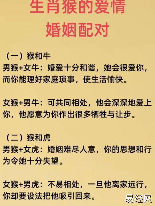 2025最新婚姻属羊和属猴 老公属羊老婆属猴好吗是什么意思?,最新生肖运势由易经网整理发布!,2025最新婚姻属羊和属猴,老公属羊老婆属猴好吗是什么意思?在生肖配对中,属羊和属猴的组合被认为既有互补也有挑战。属羊的人性格温和、善良,而属猴的人聪明、机智。两者在一起,可以互相学习,共同成长。然而,也需注意沟通方式,避免因性格差异产生矛盾。2025年,这对夫妻需加强理解与包容,才能携手共度美好时光。最新生肖运势显示,这一年适合双方共同努力,提升感情稳定性。