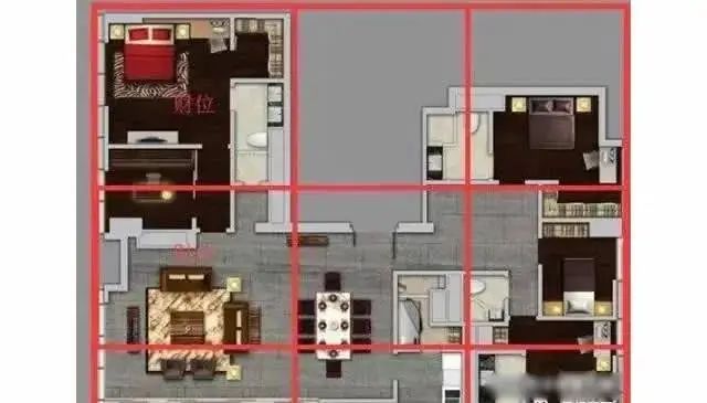 “五行”并不是通常大家所称呼的那样“金、木、水、火、土”,而正确的顺序是“木、火、土、金、水”,这个顺序也就是它们之间相生相克的关系。这是“五行盘”,揭示着它们之间的关系,相邻亦相生,相隔亦相克,这句话是什么意思呢?就是说“木、火、土、金、水”从上往下循环,上边的生下边挨着的,而克隔一个的,比如:木生火,木却克土,简单考虑的话可以这样认为,木头可以让火越烧越旺,但是木头在图里生根发芽却是不停的在吸收土里的养分,世界就是这么奇妙,易经亦是如此,越是研究就越是觉得世界万物之间都是有联系的。说风水之前,先给大家普及一下“五行”的知识,只有明白了五行之间的关系,你才能找到你家的财位在哪,官位在哪等。所谓的家居风水之四大职能位置,就是指财位,官位,文昌位,平安位。弄懂了“五行”之间相生相克的关系,我们现在就来说下一步,“八卦九宫格”,弄懂了“八卦九宫格”和“五行”,我们就可以寻找自家的四大职能位置啦。九宫格中的九个格子,分别对应着八卦的八个位置“乾(天,五行为金,方位西北)、坤(地,五行土,方位西南)、震(雷,五行木,方位正东)、巽(风,五行木,方位东南)、坎(水,五行水,方位正北)、离(火,五行火,方位正南)、艮(山,五行土,方位东北)、兑(泽,五行金,方位正西) ”以及中宫。现在我们用这个九宫格的方位与自家房子的方位相对应,然后将房子等分为九份。基本就是这个样子,如果房子不规整或者缺角,完全可以空着,大致这么分为九份就好。其中,坐的意思就是你家房子的坐向,比如房子坐南朝北,那么坐表示的就是南。宏观的说,你家入户门相对的方向,便是“坐”。坐向分八方,每方45度。给大家实例分析一下,请看下图,以这个房子为例。假如这是一个坐北朝南,中规中矩的户型,那么入户门所对应的方向就是南,入户门在北。那么南就是“坐”,现在我们找一下财位,也就是坐克,根据“木、火、土、金、水”的顺序,南的方位是“火”,“火”克“金”,那么金的位置就是财位,而金在西和西北方向,所以这个户型的财位就是在客厅和主卧室的位置,财位在主卧和客厅,说明这家宅主的财运可观。官位在正北,正北宫位是空的,说明这家宅主虽然财源不错,但是没什么官职,或者是富而不贵的人。正东和东南方是文昌位,可以布置书房和孩子房。这家可以将孩子房布置在东南方,因为东南是天然的文昌位。东北和西南是平安位,可以放置家中重要的物品,挂车钥匙。从堪舆学的角度分析,风水的好坏直接影响到人的运势,健康,财富,家庭等问题。“水能载舟亦能覆舟”,而风水对于们的影响正是存在这样双面的道理。由浅入深的分析便是风水学上的布局,一座房宅的好坏不能单纯从以上角度分析,人类的生活具有多样化,包括健康,家庭,学业,事业,交际等等。这方方面面放在风水学中都被细分化。住宅风水自古有之。是古人对自然和居住环境的理解,在现代社会,住宅风水仍然有一定的意义。中国人对于家居风水一向都比较讲究,很多人都关注怎样的家居风水布局才能旺财旺丁,健康平安。其实家居风水的根本目的是达到室内外气场的和谐,使人的身心环境达到更加和谐的状态,由此催生各种好的事情。