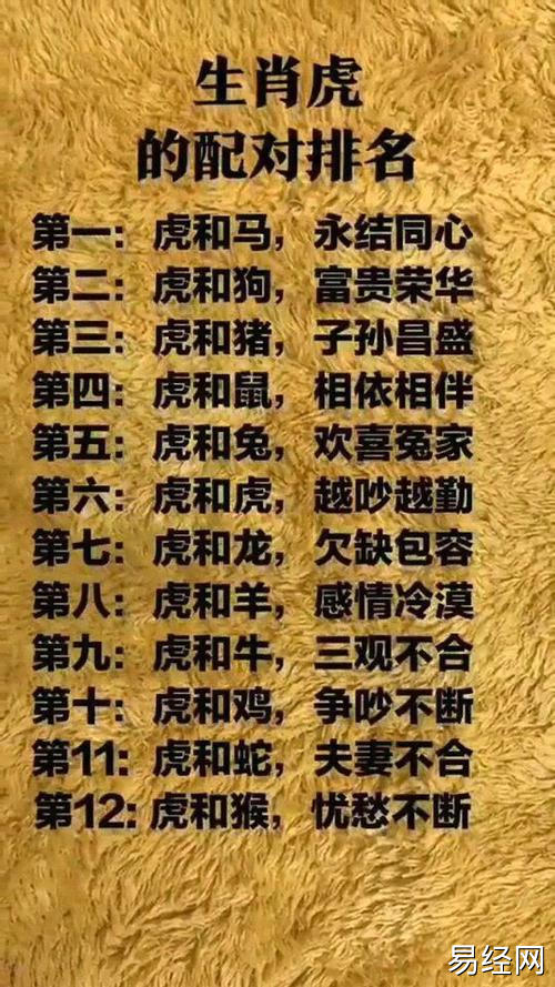 易经网推荐2025最新属虎对属狗的感情 属虎与属狗的婚姻配对是什么意思?,最新生肖运势,下面是详细内容: 缘分与性格匹配度 属虎与属狗在生肖合中为相刑,即存在一定的情感阻力。属虎之人热情奔放、积...