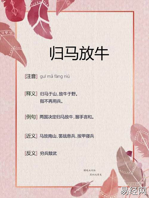 易经网推荐2025最新休牛归马是什么生肖 休牛散马的意思是什么意思?,最新生肖运势,下面是详细内容: 传统文化中,生肖不仅是时间的记录,更是深厚文化积淀的象征。提到“休牛归马”,许多人可能会陷入对...