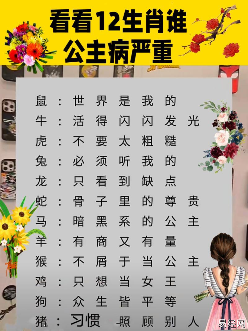 易经网推荐2025最新公主病的生肖是什么 哪个生肖是残疾肖是什么意思?,最新生肖运势,下面是详细内容: 在十二生肖中,与公主病形象挂钩的生肖往往备受争议。有人认为她们娇气任性、高高在上,也有人认...