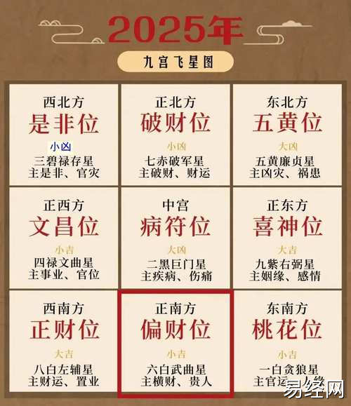 易经网推荐2025推荐九宫风水与财神位 家居九宫风水摆件,最新易经风水,下面是详细内容: ,九宫风水是一个深奥而神秘的领域,其中财神位的摆放尤为关键。掌握九宫风水与财神位的关系,不仅能帮助您优...