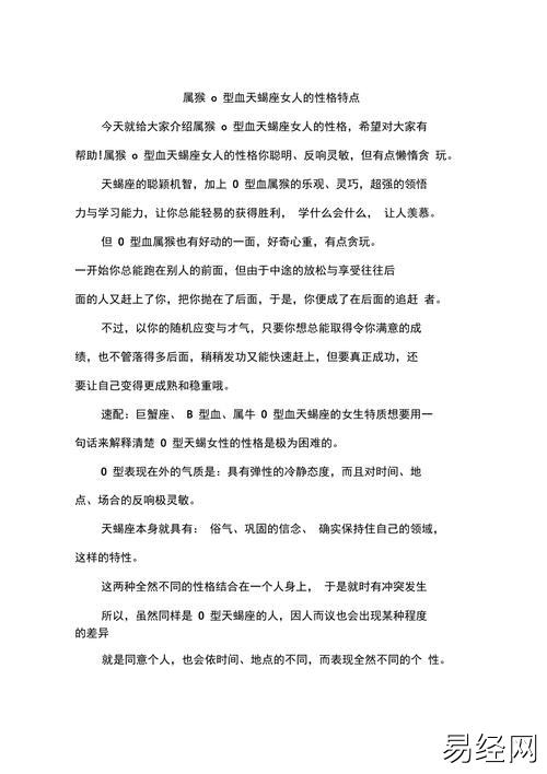 易经网推荐2025最新属猴的天蝎性格怎么样女生 属猴的天蝎男好不好是什么意思?,最新生肖运势,下面是详细内容: 魅力、洞察力、神秘感、忠诚、独立 属猴的天蝎座女性性格复杂且迷人,她们兼具猴子的机智...
