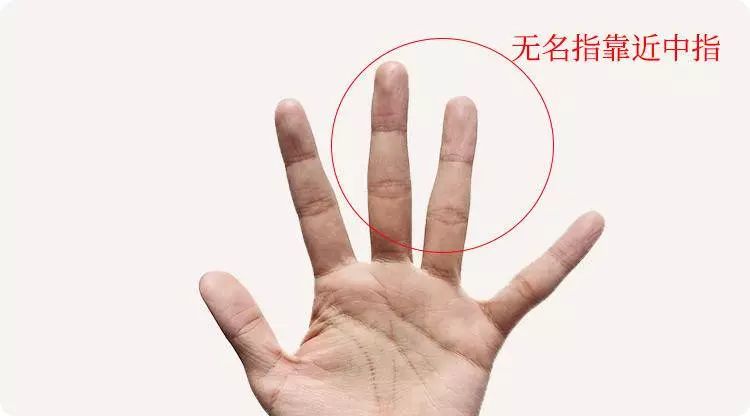无名指则代表着一个人与配偶和家庭的关系,如果偏向于中指,意味着此人对家庭有着很强的责任心,乐于奉献,家人会得到悉心细致的照料;如果偏向于小指,表示会对子女付出很多,到了晚年,会得到子女妥善的照料。