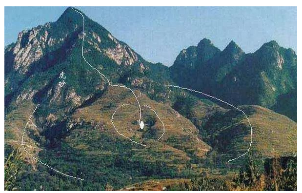 以上是讲龙的祖宗山,少祖山,父母山、胎息、孕,育。成穴的一脉传承的关系。古云:“胎育孕育,变化无穷”,万里之山各起祖宗,而必经父母,才能胎息孕育,然后成形,以认形取穴,明其父之所生,母之所养。龙的出身也和人一样,有富贵贫贱,凶恶善良之分,奸邪者祸国殃民,正直善良者,天下受福。善良富贵之龙的特征前呼后拥,生动活泼,灵气活现,心旷神怡。凶恶龙的特征巨石磷峋,草木稀少,左崩右缺,满身尖利,凶气迫人,寒气迫人,杀气腾腾,四周无情。贫贱龙的特征是:硬直、懒惰,涣散,无星无帐。剥换就是变化,无穷无尽,有好的变坏,也有坏的变好,龙的变化,是山水秉承天地日月之精华在演变。玄妙之间,吉节祸福。应验之机,“一剥一换大生细,从大剥小最奇异,剥换退卸见真龙,小峰依旧狼星起。剥换如人换好装,如蝉退壳蚕脱衣”。(3)从大剥小最奇异,剥换退卸见真龙。