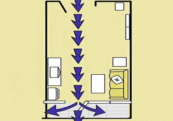 其不利的风水后果是宅主易因病灾等之事而破财。最简单有效的化解方法是用屏风等隔断相关部位,使其通而不透即可。