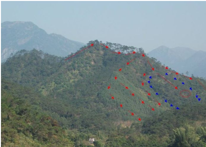 6、峡中左砂短,则穴前左砂必先到,峡中右砂短,则穴前右砂必先到。
