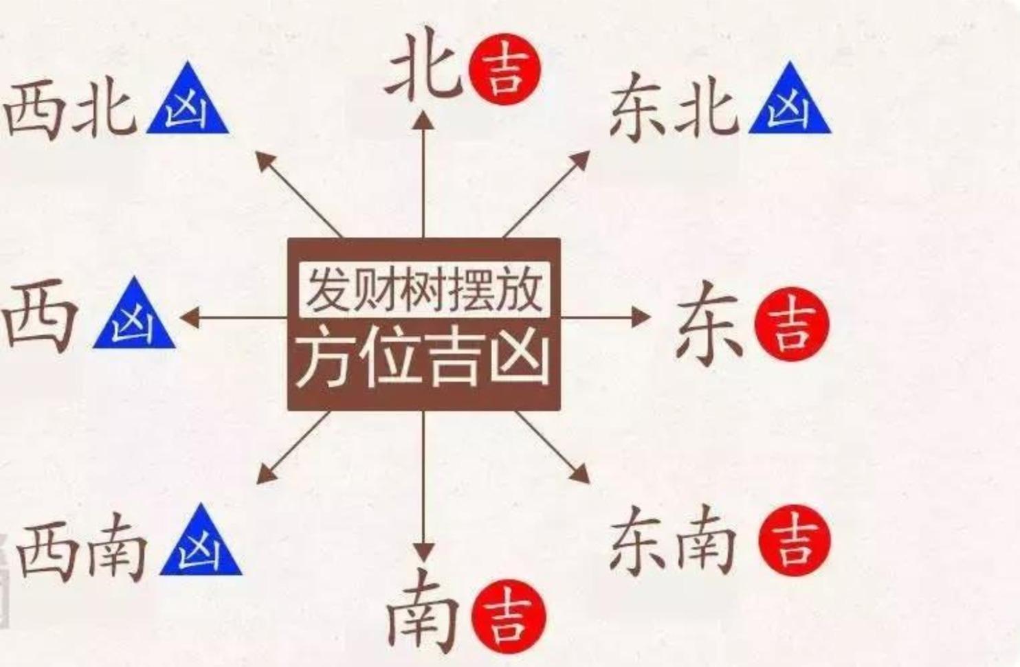 通常,在室内摆放绿植时,发财树是人们的首选。不仅能招财,带来福运,还具有净化空气和美化环境的作用。但是发财树的摆放方位却是很有讲究的,你摆放对了吗? 正东方:震宫,吉,五行属木,木木同气,紫气东来,利于事业兴旺。 东南方:巽宫,吉,五行属木,木木同气,能催旺财门方,大利财运。 正南方:离宫,吉,五行属火,木生火,可招财运,声名大显。 正北方:坎宫,吉,五行属水,水生木,能防止破财,好运连连。 西南方:坤宫,凶,五行属土,木克土,影响脾胃健康和女主人运势。 东北方:艮宫,凶,五行属土,木克土,不利子嗣,影响健康。 正西方:兑宫,凶,五行属金,金克木,不利夫妻感情。 西北方:乾宫,凶,五行属金,金克木,不利男主人运势。 房中间:中宫,凶,五行属土,木克土,会形成“困”局,影响主人的事业运。 (适用家中所有绿植)