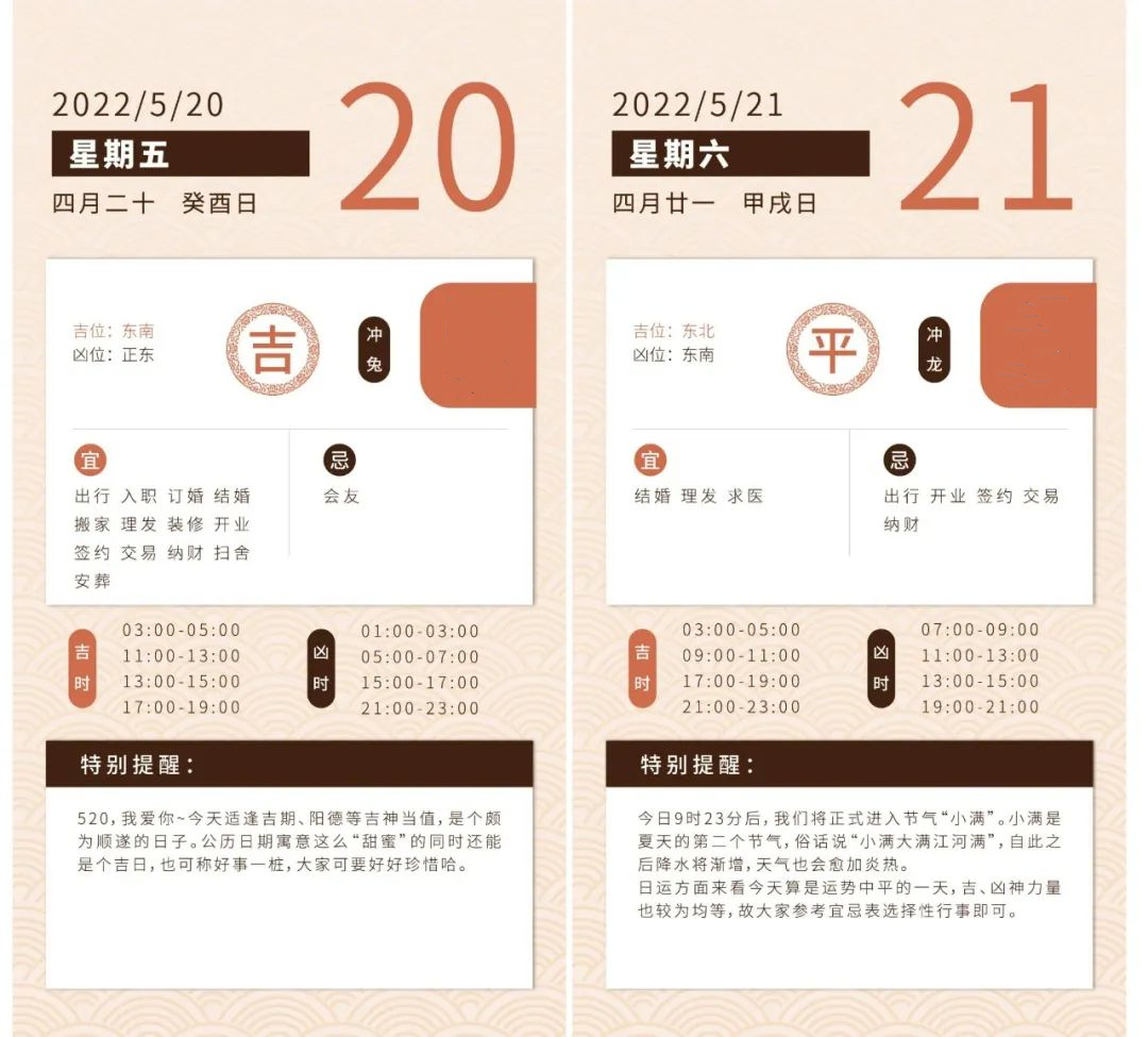 520、521作为网络情人节,出现的原因就在于数字读音是“我爱你”、“我愿意”,所以520、521又常常被称为“表白日”“求爱节”,也有人在这天领证,或者办结婚酒席,因为这天也有“婚姻吉日”的说法。 今年的520则确是个吉日,挺适合表白、结婚的。521则是小满节气日,虽然只是平日,但对姻缘来说也还是蛮有利的。 当然,像520这种网络节日,尤其是还有着强烈商业动机的新节日,其实并不用太在意玄学上的“吉凶如何”,更多是个人机缘的把握,尤其是对于表白而言。 不过还是有一些“仪式感”特别强的小伙伴,还是此类忧虑。 就表白来说,择日并不重要,更看重的是与表白对象的缘分或者八字适配程度。就说这会常理而言,表白还考虑着择日的,可能有两个“症状”: 1.你可能还没有准备好; 2.你是个对感情很慎重的人; 这两种都是容易增加姻缘障碍的,不过一旦越过这些障碍得到姻缘,也有很大几率会获得令人羡慕的长久稳定缘分。 如果不符合上述两种情况,单纯就想挑个不错的日子,那520之类的情人节会是不错的选择,反正一年里情人节很多,够表白好几次的了 还可以选个符合你用神的日子,比如你的用神是火的话,可以选个天干是丙、丁的日子,或者地支是巳、午的日子,具体日子在各种万年历上都可以查询,很多手机自带日历也有。 若是将520之类的网络情人节真当做结婚日来用,那就要慎重了。不是每个520都会是吉日的,今年虽然不错,但前两年的520都是大凶之日,诸事不宜的那种。 正好利用这个契机,今天就大家说一下关于姻缘择日方面,到底有哪些要求。 真正关于婚恋姻缘的择日,主要用在订婚、领证、结婚三个。 古代只有双方家庭订婚,以及后续办酒席、婚礼的结婚程序,现在随着社会秩序的进步,加上了去民政局领证的步骤,那很多人又有疑惑了,所谓“结婚”,到底是领证算结婚,还是办酒席算结婚? 答案是——两个都是结婚 。 领证算结婚,是法律上的“结婚”,有民政局代表的官方认证,是社会秩序的认可,这种毋庸置疑是结婚。 办婚礼、酒席,古代婚礼要三拜:拜天地、父母,夫妻对拜,现代婚礼有互相宣誓,给父母敬茶之类……这些都是整套仪式,也意味着向天地、父母、亲朋好友证明二人的伴侣关系,这是天地、风俗上的认可,也是男女双方的亲朋对婚姻的认可,人不可能脱离天地、亲友,所以这是另一道冥冥之中的“秩序”。 两者都是结婚,都需要严肃择日。 订婚,与结婚有很高的重合度,八成的结婚吉日也都是订婚吉日,所以今天重点来和大家解释一下结婚择日。 在合婚择日体系中,结婚择日十分严苛,要过四关: 第一关: 大规模筛查(天时) 第一关就是根据择日神煞,从一年时间中筛选出宜结婚和忌结婚的日子,在比较全面的《协纪辨方书》择日体系中,影响婚姻宜忌的神煞有以下这些: 宜结婚嫁娶的择日神煞:天德、月德、天德合、月德合、天赦、天愿、三合、天喜、六合、不将日。 这里面很多都是大家听过的神煞了,比如宜结婚的天德、月德、天赦日之类的,不仅适合结婚,其他大事都很合适。在忌结婚的选项里,大多也是凶厄程度较高的神煞,比如月破、劫煞、灾煞、五墓之类,经常出现在我们周运、日运的说明里。 当然这里面也有一些没有提到的,比如四绝日、四离日。 四绝日指的是一年中立春,立夏,立秋,立冬四个节气的前一天,比如今年5月5日立夏,5月4日就是四绝日,也是诸事不宜。 四离日指的是春分、秋分、夏至、冬至四个节气的前一天,今年夏至是6月21日,那夏至前一天的6月20日就是四离日。 通过这些择日神煞的筛查,一年中宜结婚和忌结婚的日子就能排列出很多,但整体还是有些粗糙,因为这些择日神煞有个特点——并不是完全为了婚姻设定的。 比如天德、月德日,不仅适合结婚,也适合别的事情,比如四绝日、月破日之类的,不但忌结婚,还忌很多,甚至诸事不宜。 所以在这些基础上,也要看重一些专门针对婚姻、姻缘方面的神煞和特殊日子。 第二关: 避开明显不利婚姻的日子(天时) 这点我们之前也科普过,比如今年2月22日的时候,我们说过真三娘煞日,不宜结婚。 三娘煞日有真假之分,假三娘煞的设定范围大得离谱,农历每月的初三、初七、十三、十八、廿二、廿七,都是三娘煞日。 攻击面这么广自然不太可靠,可以无视,但真三娘煞要注意了,真三娘煞的判断方法如下: 这种情况也难以避免……结婚择日就如同男女从恋爱到结婚的过程一样——难,理论上完美的婚姻只是理论上的,现实总有一些万般无奈的遗憾。