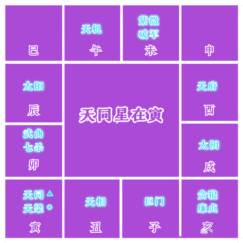 申宫:天同旺位,天梁陷位 天梁是一颗『荫』星,有逢凶化吉、遇难呈祥的功能,在寅、申二宫与天同同宫,天同星是福星,『福荫』相聚,主此人心地善良、个性温厚、处世随和,思想清高,内涵精细,外表虽木讷,但能化解许多困难,您有天同星热心助人及积极乐观的一面,也有天梁星喜欢自寻烦恼、钻牛角尖的特质,而此生也必定会有许多麻烦产生,令人困扰之后,再一一加以化解。 由于天梁星在寅宫是庙旺位,在申宫天梁星却落陷无亮度,天梁星是「遇难呈祥」的星曜,落陷时化解困难的力量小,因此会倍增烦扰。但不论在寅或申宫,都不喜欢遇到六煞星,将使人更忧心焦虑,困难重重。 天同星在寅、申二宫安命,财帛宫必有太阴星,事业宫有天机星,也是『机月同梁』的格局,都具有企画之头脑与优秀之处事能力,做事有次序、思考有条理,为最佳之幕僚人员,不适宜掌权或当管理人员,宜追随强而有力的人做事,协助他们创业,不管是军、政、商,都是上司的得力助手。 女命天同、天梁二星安命虽有『福』『荫』双星蔽护,但却喜欢『自寻烦恼』,很容易因此将家里的『稳定』破坏,有天天老想往外跑的现象,若天同、天梁二星在寅、申二宫又有天马星同宫,如无吉星辅佐,即使不遇咸池、天姚等星,小心会有外界的诱惑,容易犯桃花。 天同、天梁星在寅、申宫,事业宫必定是在午或子宫,宫内主星为天机星,财帛宫是在戌或辰宫,宫内主星为太阴星,由于不管从命宫或事业宫或者是财帛宫,它们的三方四正所会照到的都是天机、太阴、天同、天梁这四颗星所组合而成的『机月同梁』格,此格之特征为,具有企画之头脑与优秀之处事能力,做事有次序、思考有条理,由于古书上说『机月同梁作吏人』,(所谓的『吏』就是以前县太爷身边的师爷『刀笔吏』)是为最佳之幕僚人员,不是当『官』的材料,故不适宜掌权或当管理人员(如让他们掌权或管人,很容易搞砸了),宜追随强而有力的人做事,协助他们创业,不管是军、政、商,都是上司的得力助手,也由于能居高位,故也能由此而『名利双收』。
