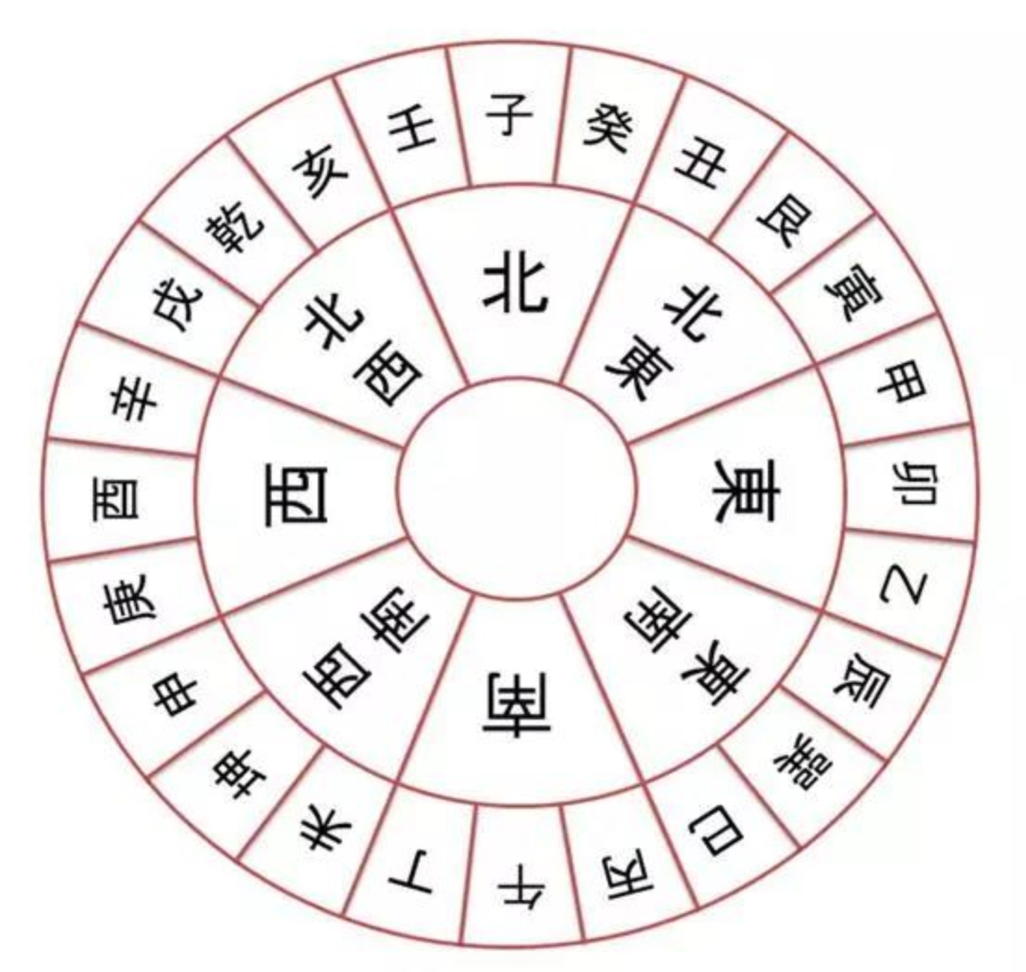 把方位用磁北极定位分成24等分,归划统计之下会发现一个很奇怪的原则,每一个区域它的磁场只适应于某些人而已,在罗经上磁针指到的北方是磁北极的北,不是地球子午线的北,定位出东西南北四方位分成四等份之后,再把它分成八等份,从正北左右各分22.5度,两边合起来是45度,这是北方,其他的正东正西正南也比照分割总共是八个方位,如果再细分,在每一个45度的方位里面用15度平分成三格,变成24个方位,这些小格可以决定你碰到的物体和你会有什么作用,每一个小格和地球自转的时间有关,要感应到人的时候就要看是转了多少转,阳宅一般是2160转(360换乘上6),等于是六年后才会感应。八方位所含的字列出来如下:
